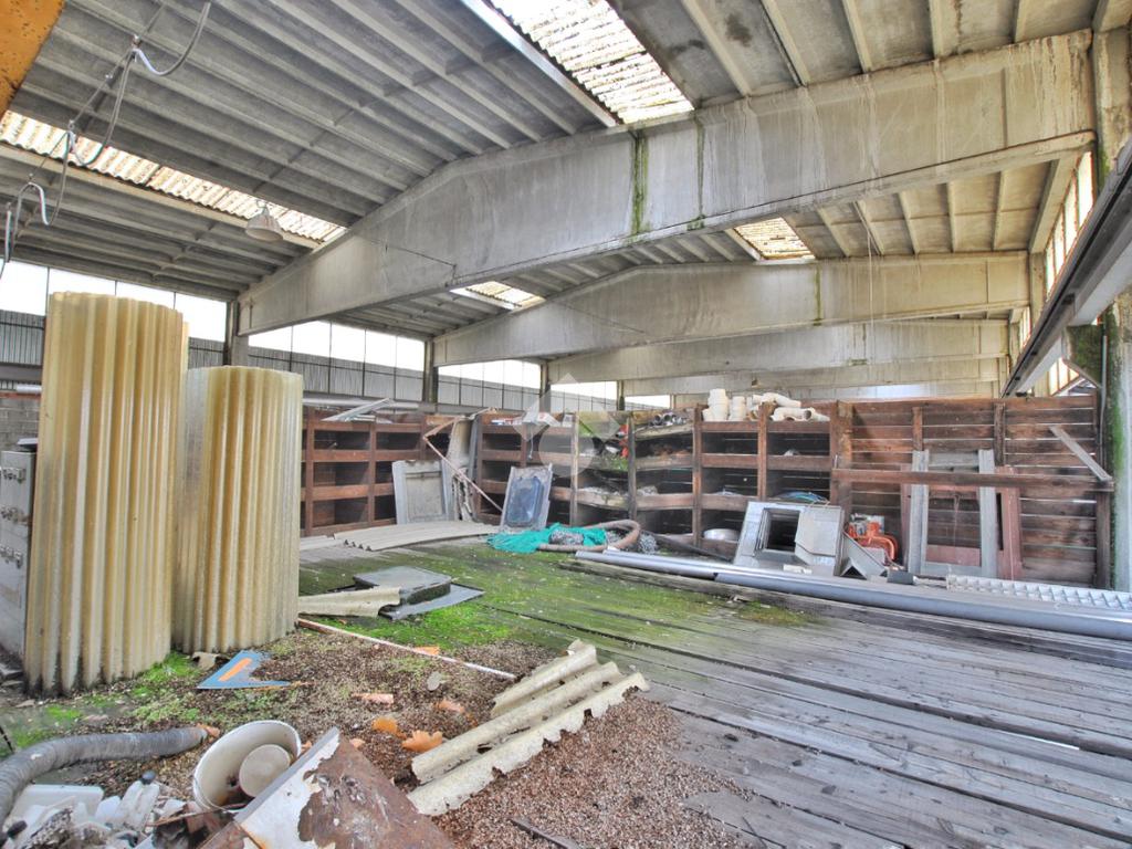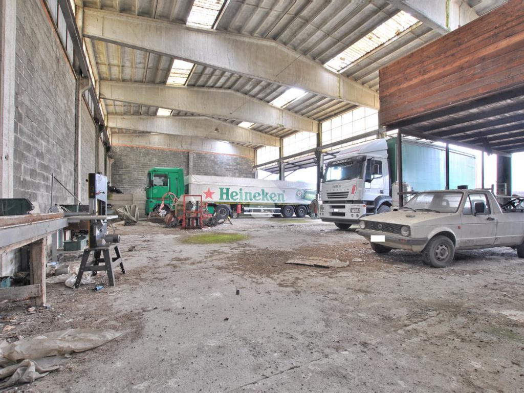 Il capannone, da ristrutturare e aperto sul fronte, ha una superficie coperta di circa 500 mq ed è così composto: