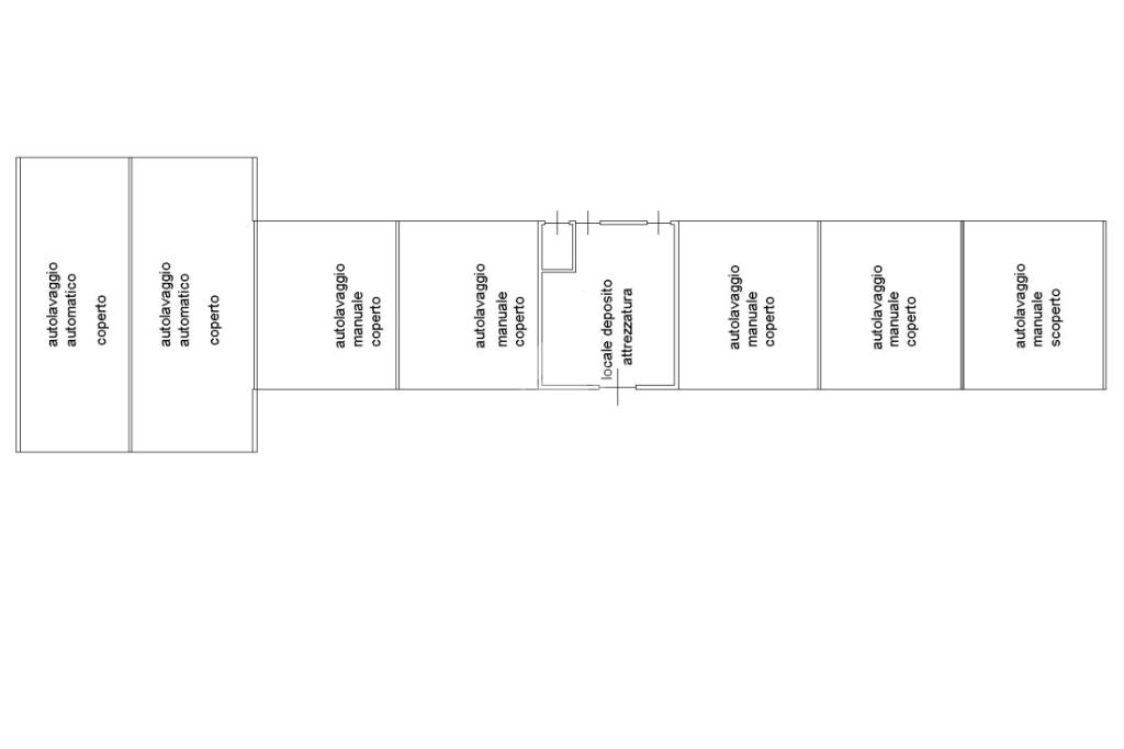 - 1 locale tecnico ospitante: impianto di depurazione, gruppi pompa box self-service, sistemi di dosaggio prodotti chimici, impianto di addolcitura delle acque, impianto di osmosi inversa (con relative vasche di accumulo), gruppo alta pressione portale, box monete/gettoni/tessere (con predisposizione delle canaline per il recupero dei gettoni dalle colonnine istituite all’interno di ogni box);