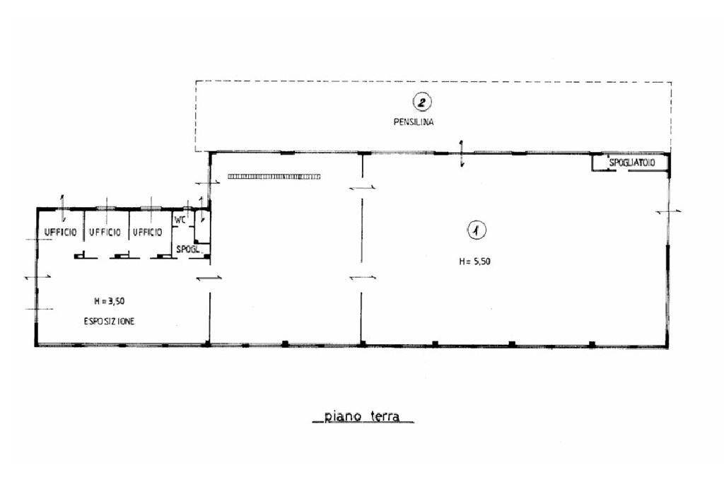 - Uffici: circa 150 mq, suddivisi in tre locali da 15 mq ciascuno, area espositiva, spogliatoio e servizi igienici;