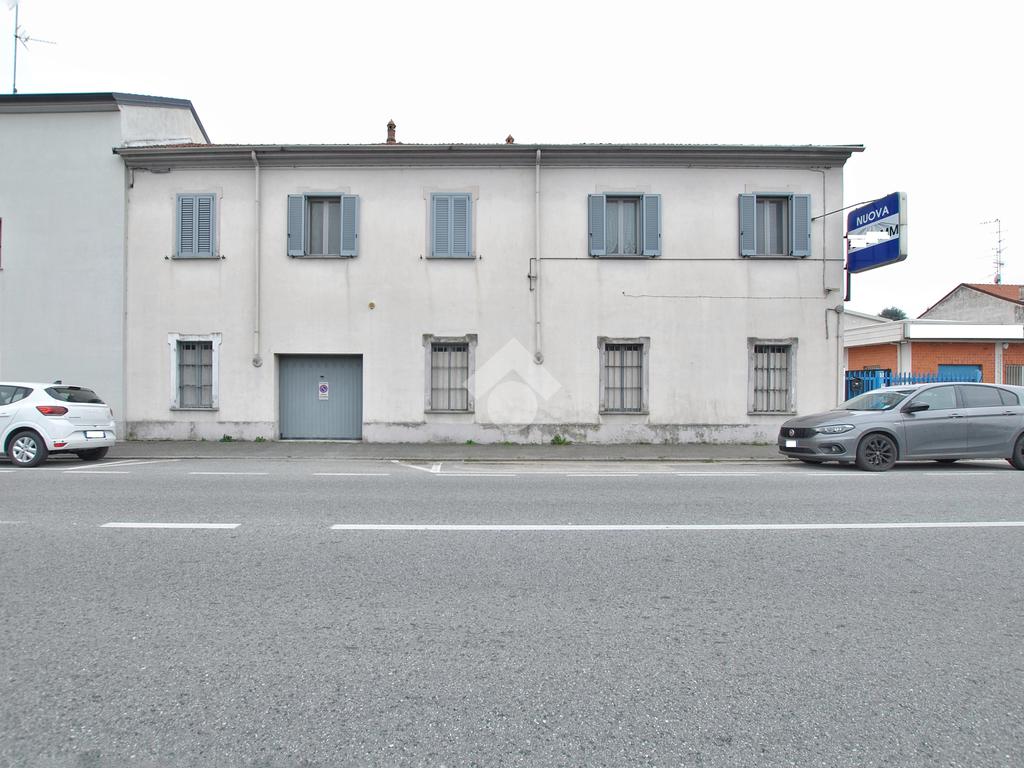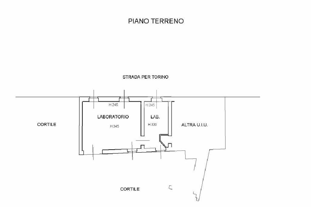 - Edificio fronte strada su due livelli: circa 230 mq totali, composto da laboratorio con garage al piano terra e appartamento quadrilocale al primo piano (attualmente locato).